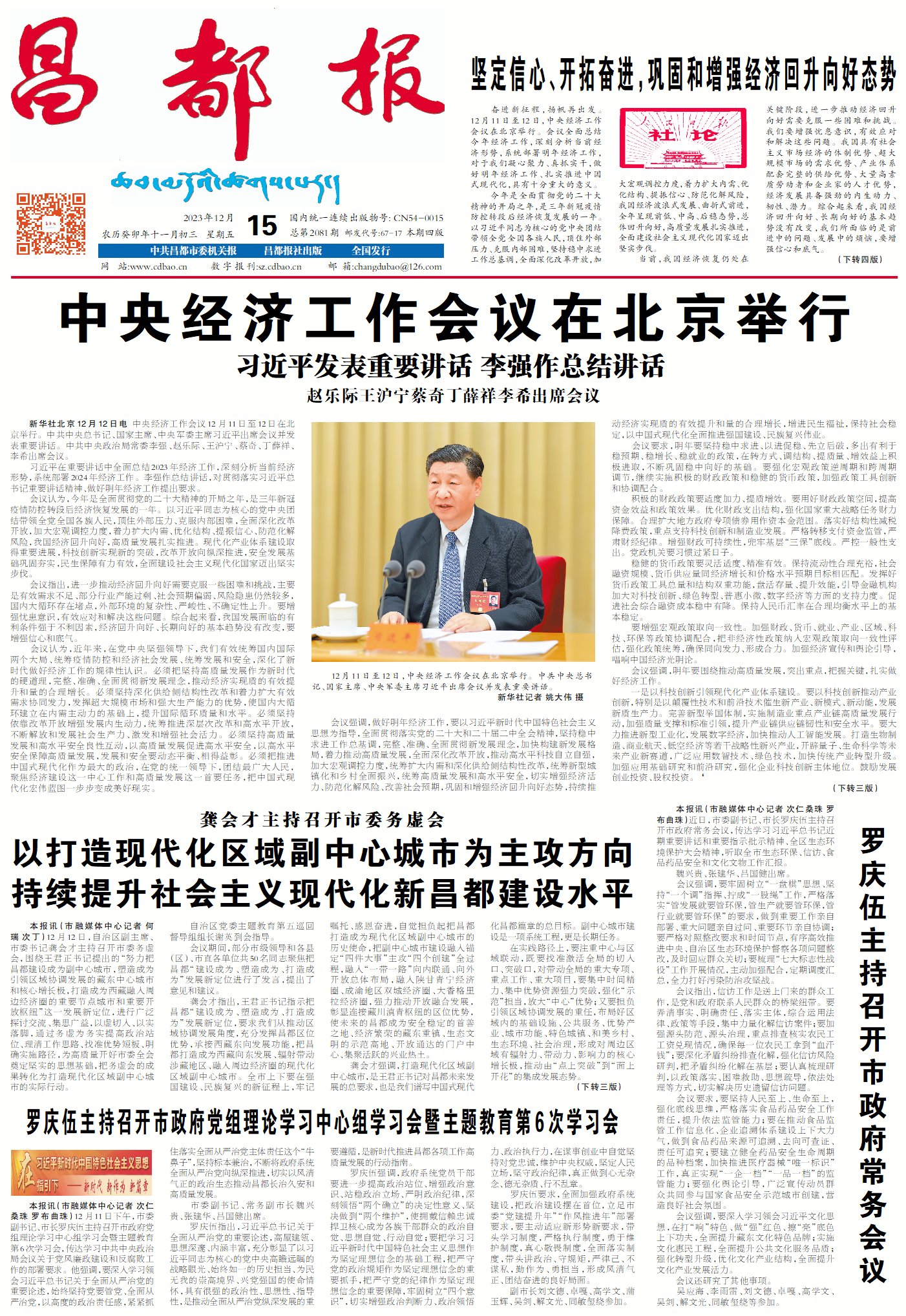 明年經(jīng)濟工作的大政方針已定,鞏固和增強經(jīng)濟回升向好態(tài)勢,持續(xù)推動經(jīng)濟實現(xiàn)質(zhì)的有效提升和量的合理增長,使命在肩、責任重大。讓我們更加緊密地團結(jié)在以習近平同志為核心的黨中央周圍,堅持以習近平新時代中國特色社會主義思想為指導,深刻領悟“兩個確立”的決定性意義,增強“四個意識”、堅定“四個自信”、做到“兩個維護”,堅定信心、開拓奮進,努力實現(xiàn)經(jīng)濟社會發(fā)展各項目標任務,以高質(zhì)量發(fā)展的實際行動和成效,為以中國式現(xiàn)代化全面推進強國建設、民族復興偉業(yè)作出新的更大貢獻。